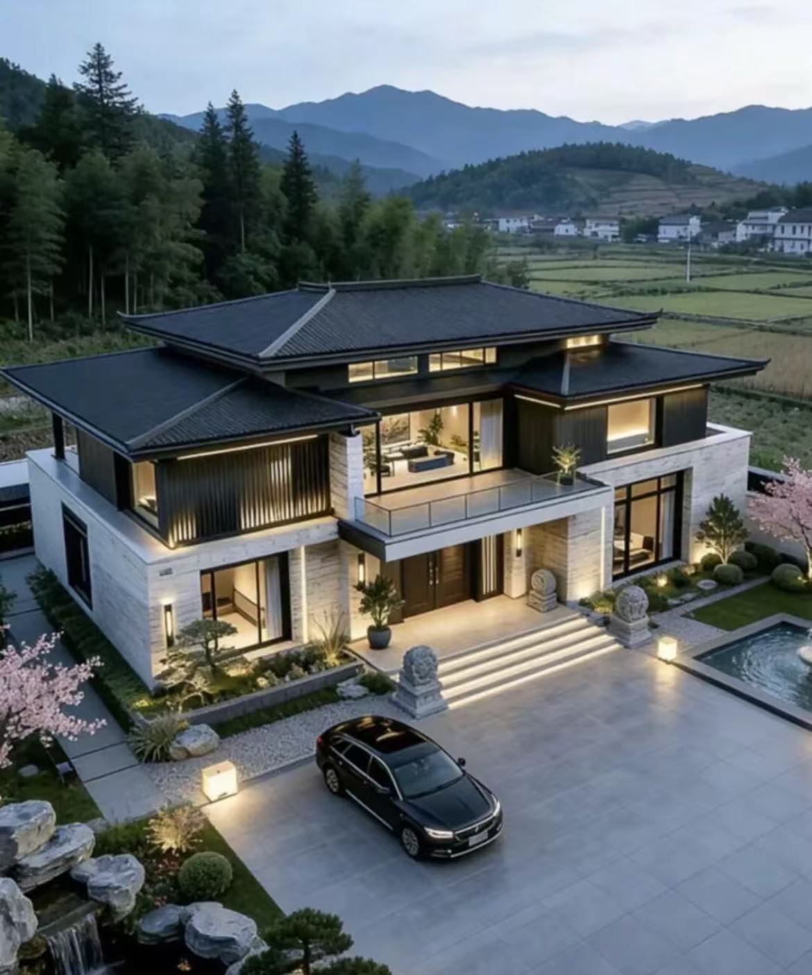 - 对称式布局:整体造型遵循中式建筑的对称美学,大气庄重,符合国人对 “门第” 的审美追求。